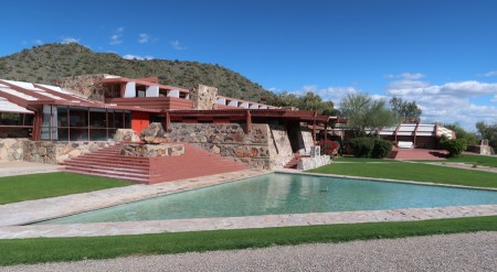 On the way to the Marriott we saw the exit for Taliesin West, Frank Lloyd Wright’s famous winter home and school in the Sonoran Desert from 1937 until his death in 1959 at the age of 91. It is Scottsdale’s only National Historic Landmark.