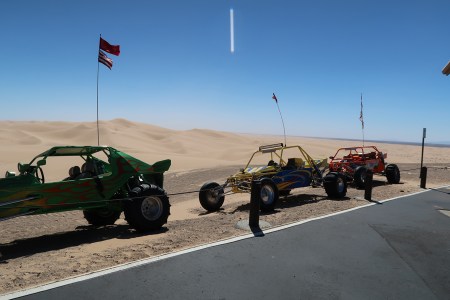 We saw a couple of dune buggies driving across the sand, but most were stopped and waiting because of the high winds