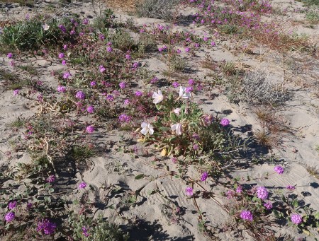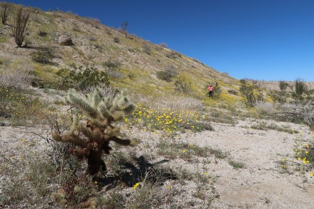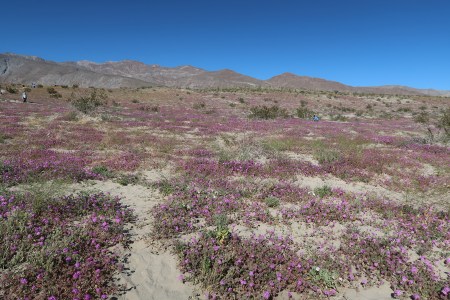 Our next stop was along S22 east of Borrego Springs where there were hillsides covered with wildflowers. The purple sand verbenas were close to full bloom.