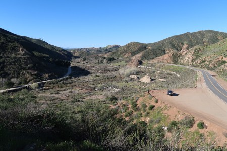 3/18 M – 1hr to Saint Francis Dam Disaster National Monument and National Memorial; it is located in Angeles National Forest NE of Santa Clarita. This is a new (2019) National Memorial and is the only one administered by the USFS. We proceeded up Francisquito Canyon Rd to a Los Angeles Dept of Water and Power site where there is a plaque describing the disaster. When the Visitor Center is built it will tell two stories; (1) the story of the aqueduct system providing LA with water, and (2) the Saint Francis Dam Disaster.