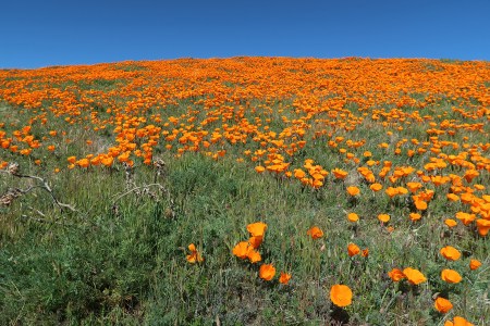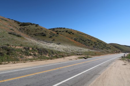 Helen wanted to see the poppy fields Kate had told us about. So, we continued north on San Francisquito Canyon Rd toward Lancaster. After we passed through Green Valley, we found the hills covered with poppies.