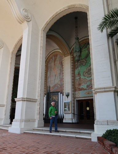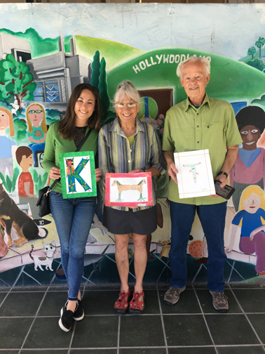 3/17 Sun – St Patty’s Day: Saint Francis of Assisi church for mass, breakfast/flea market in church hall (Tom Hawaiian shirt, Kate mixer), and then a Celtic Art lesson at the Barnsdall Art Park. We were asked to draw/color a picture using the first letter of our first name. We were given some examples of mythical Celtic figures to use in our drawing. Leprechauns, shamrocks, green beer, etc. were not mentioned! You can tell who has the art talent in our family!