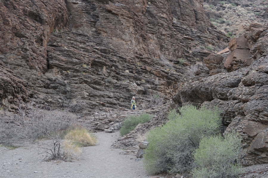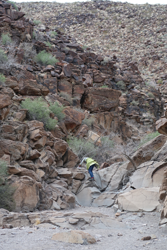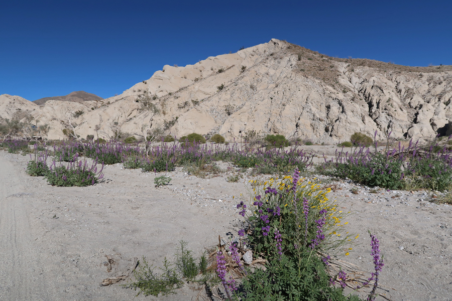 Our last stop was in Coachwhip Canyon. After we had driven as far as we could on the 4WD road, we were rewarded with blooms of Arizona Lupine and yellow Brittlebush