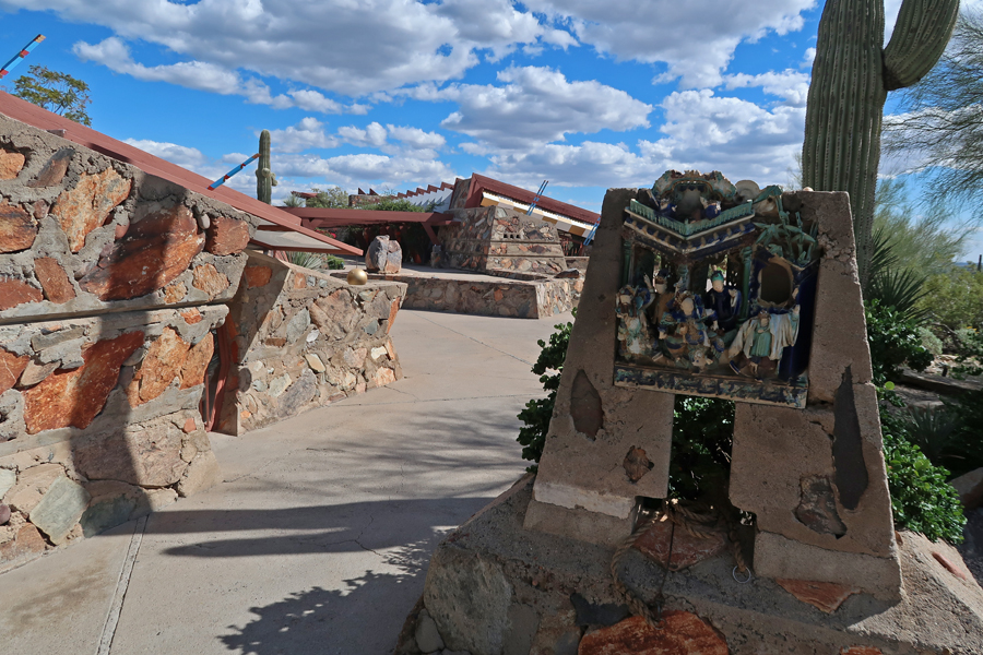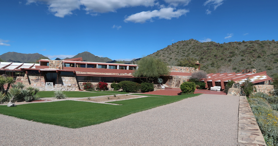 On the way to the Marriott we saw the exit for Taliesin West, Frank Lloyd Wright’s famous winter home and school in the Sonoran Desert from 1937 until his death in 1959 at the age of 91. It is Scottsdale’s only National Historic Landmark.