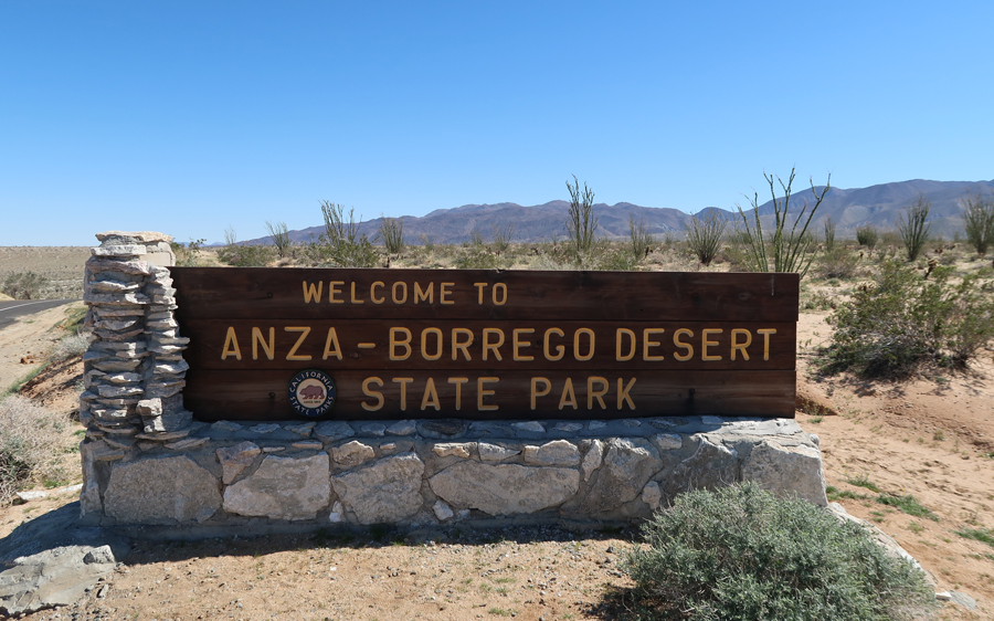Another hour brought us to Anza-Borrego Desert State Park. We came here for the wildflowers. There was a “super bloom” this year because of all the rain and snow during the winter. The wildflowers themselves have their season as well. So, we saw some we had not seen when we were here in March 2005 and others, we had seen then, were either past bloom or had not yet bloomed.