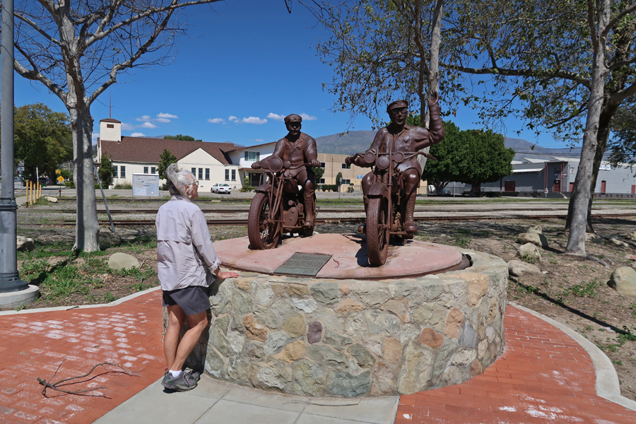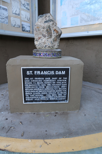 We connected with I5 south and then took Rt 126 west to Santa Paula to see the Saint Francis Dam Disaster Memorial Marker there. The dam burst just before midnight. About 1.5hrs later an urgent message reached the police department here of the imminent disaster. Two officers rode through the night to warn citizens in low lying areas that a torrent of water would soon inundate their homes. Their ride ended at 3:05am when a wall of water swept through Santa Paula.