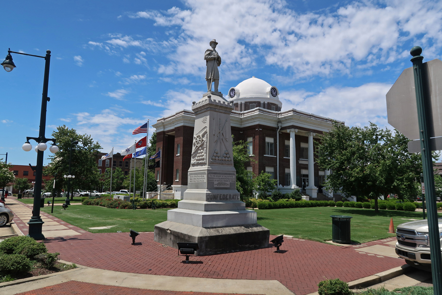 6/12 W – had Sequoia towed to Toyota dealer. A part in the shifting column had broken and they could not get it until the next day. I walked downtown, toured the county courthouse, and had lunch (5mi round-trip). Note the Confederate Monument.
