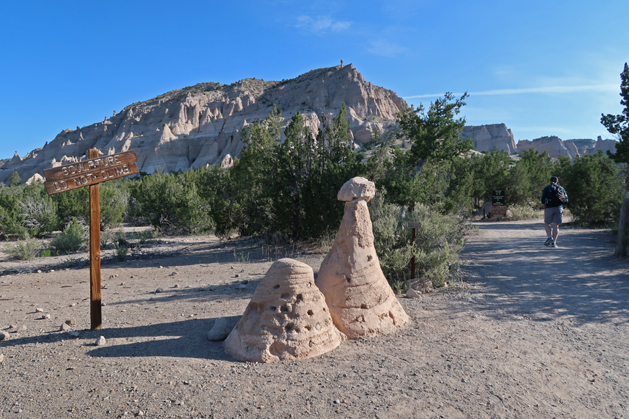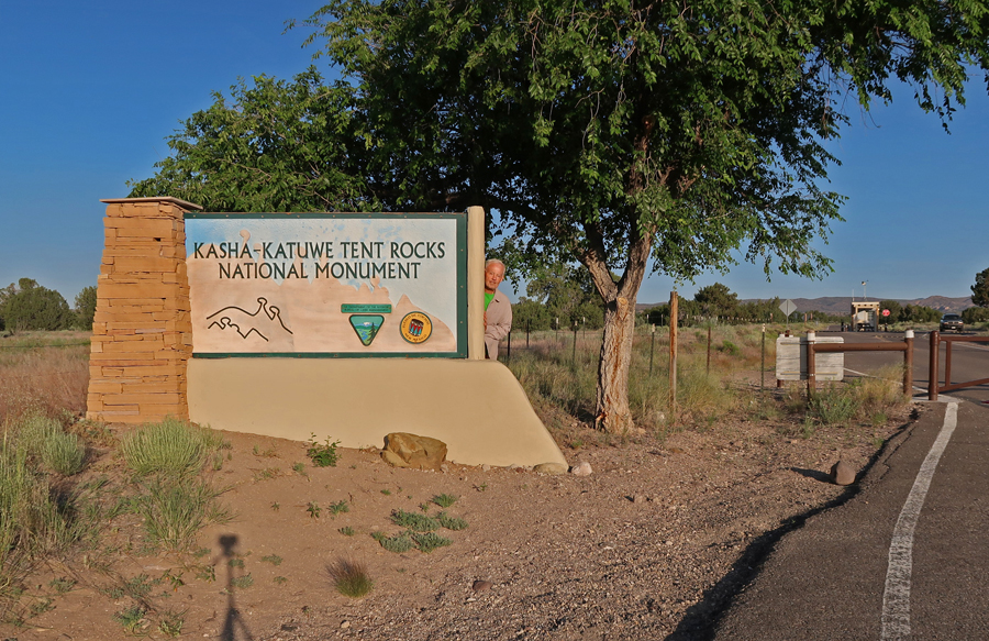 6/15 Sat – I was the first one at the entrance gate to Kasha-Katuwe Tent Rocks National Monument (BLM) at 7am. There is limited parking in the monument. Only 96 vehicles are allowed in at a time. After that, you must wait for someone to leave before you can get in. Wait times may range from 30 to 90 minutes.
