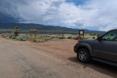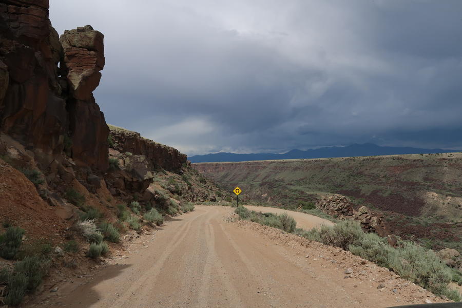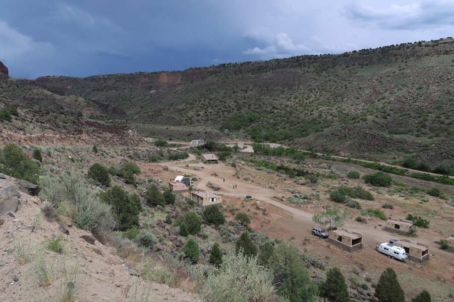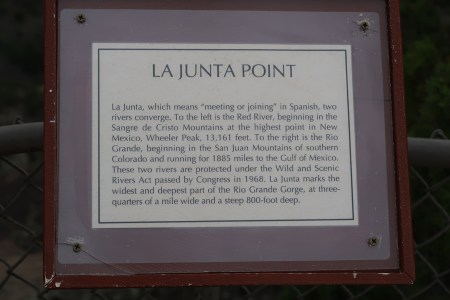 I ate my lunch of Triscuits, Monterey Jack cheese, and beef jerky while the Sequoia was serviced in Pagosa Springs CO. I then continued through some beautiful but sparsely populated land (Rt84 S, Rt64 E, and Rt285 S) to Rio Grande del Norte National Monument (BLM). I entered the NM at the Orilla Verde overlook.