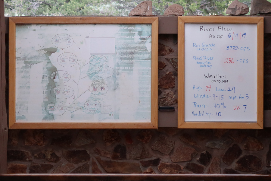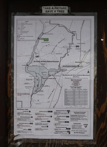 I then drove N for over an hour to the Wild Rivers Campground. This is a large (242,455 acre), relatively new (2013), NM. I took a picture of this poster to show how the Rio Grande cuts through the Taos Plateau. I believe the mountain in the distance is Ute Mountain at 10,093ft.