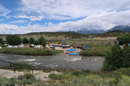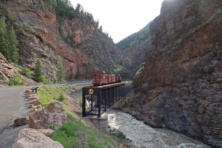 Crossing the Rio Grande del Norte on the Taos Junction Bridge, campground on west side