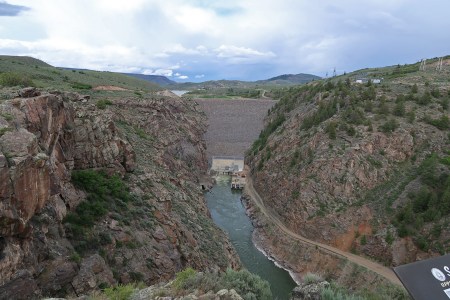 I drove across the dam into SD and the Chief White Crane Recreation Area on the opposite side. From there I climbed up the north side of the spillway for this photo back toward the Lewis and Clark Visitor Center in NE.