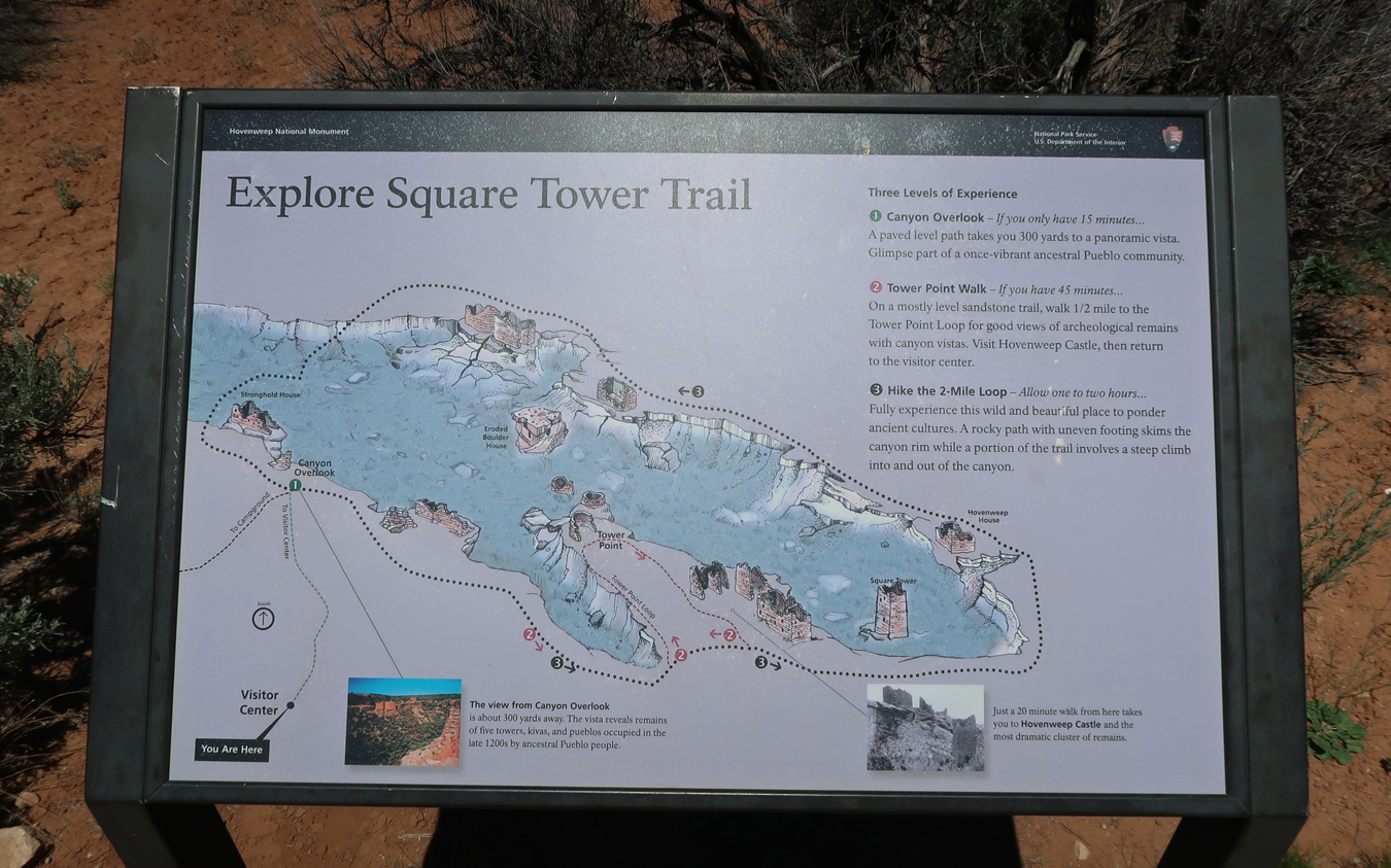 You are not allowed to go to the Great House Pueblo near the chimney rock without a guide. So, I worked out an arrangement where I would follow the shuttle to the end of the road, do the Mesa Village Trail with the guide, and then do the Great Pueblo Trail on my own when the guide started that part of the tour. That saved me at least an hour. The guide was well informed and did a good job.