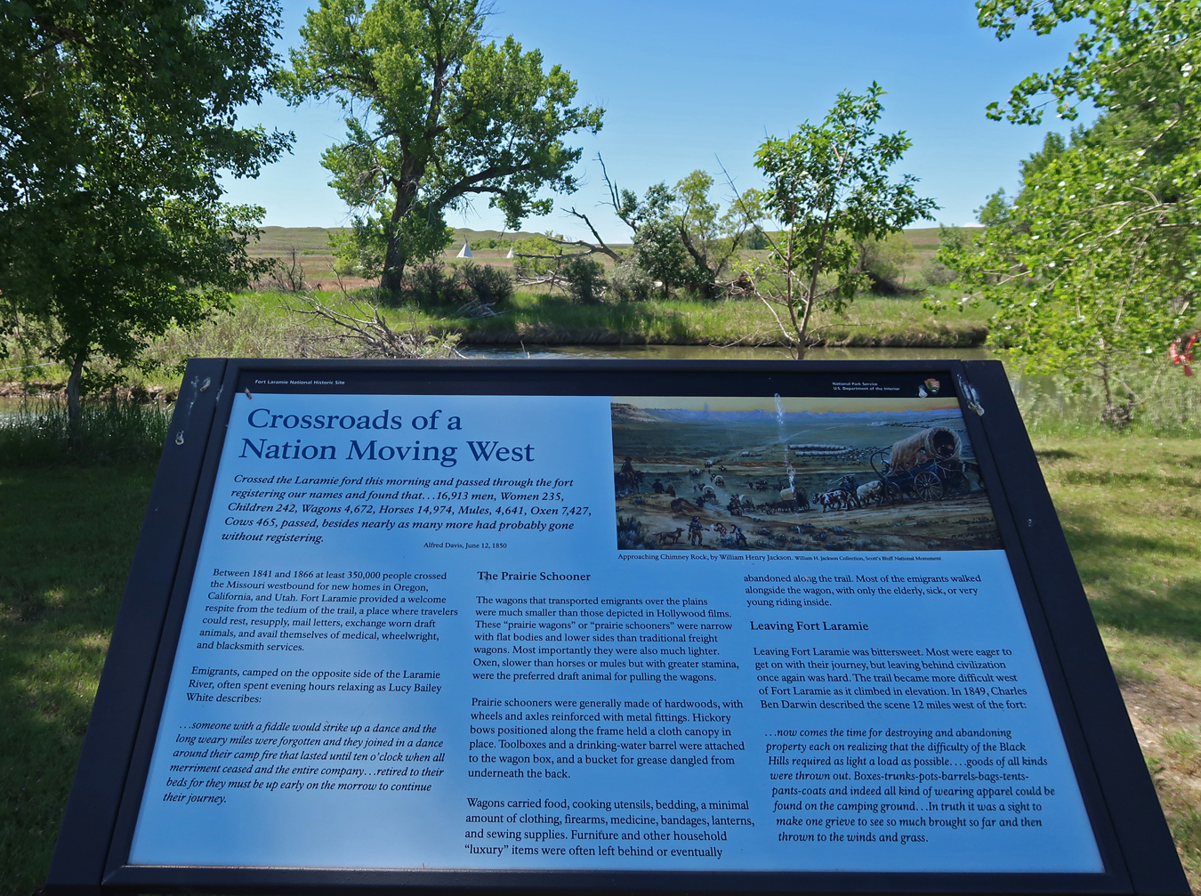 6/24 M – 3.5hrs Denver to Fort Laramie National Historic Site WY, located in a bend of the Laramie River; access obstacle