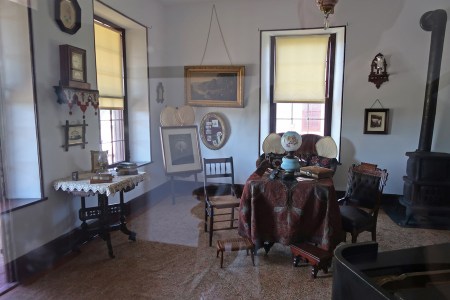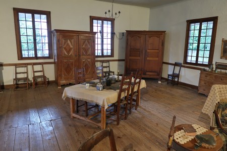 This Federal-style limestone building was constructed in 1818. It represents the American period after the Louisiana Purchase. It has been authentically restocked as a mercantile store of the trading firm Menard & Valle. Unfortunately, most items were packed in plastic crates and ready to move because of the possibility of increased flooding of the Mississippi River!