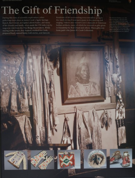 James Cook (Agate Springs Ranch) was on very good terms with the Oglala Lakota (Sioux) and had an extensive collection of their artifacts that he donated for the museum at the Visitor Center