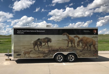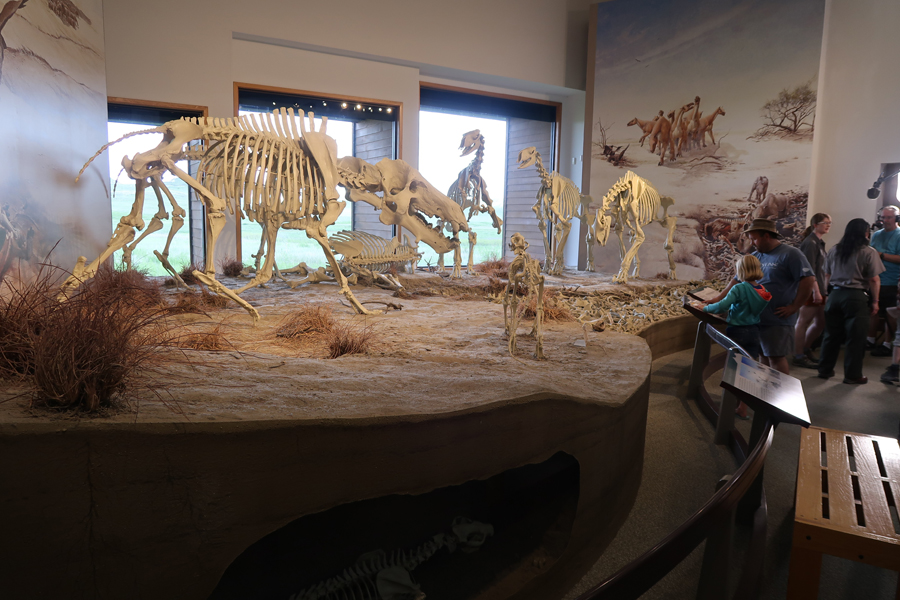 The NM land was previously owned and ranched by James Cook of Agate Springs Ranch and neighboring ranchers. It is vast, open tablelands that form the northern terminus of the High Plains east of the Rocky Mountains. While riding across the prairie, Cook spotted old bones sticking out of the ground. Years later, paleontologists unearthed the giant ferocious-looking head of a Dinohyus. The animal died during a drought 20 million years ago during the Miocene Epoch.