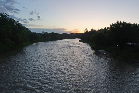 Views from Cornell Bridge over Niobrara National Scenic River, first east, and then west at sunset