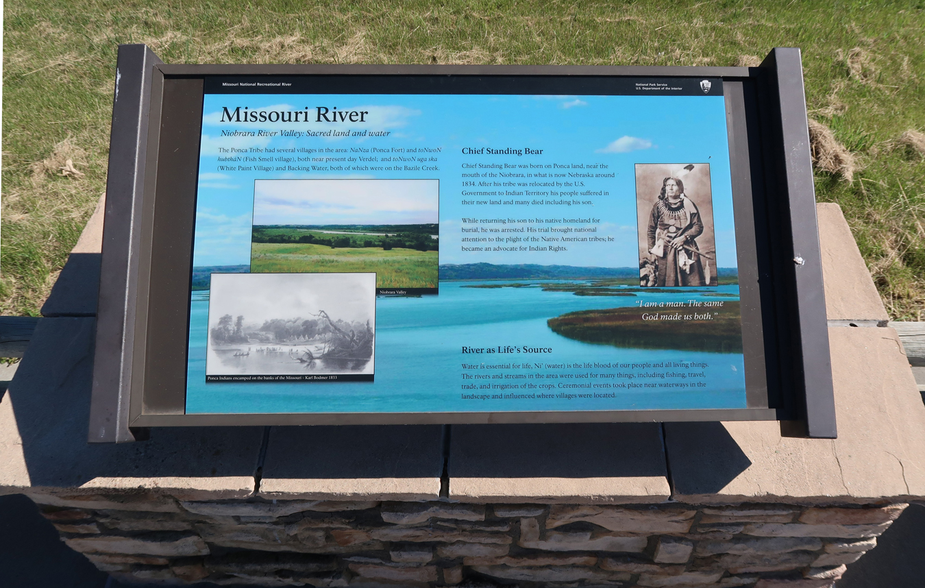 Had an oil change in Valentine, then drove 4hrs to Niobrara NE and then across the Chief Standing Bear Bridge into SD. It is the eastern end of the 39-Mile District of the Missouri National Recreational River. The Missouri River is sometimes referred to as “The Original Highway West.”