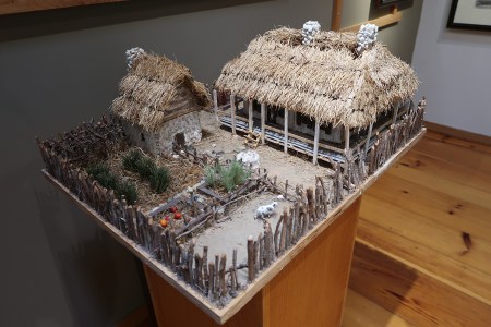 Much of historic Ste. Genevieve’s charm and ambiance is due to the remarkable preservation of its original vertical log structures. Its narrow streets and fenced gardens surround some of the most significant eighteenth-century architecture in the nation, offering visitors an unparalleled glimpse into its colonial past. “Poteaux-en-terre” construction, which means posts in the earth – vertical logs built directly on the ground. This model is in the Welcome Center. Another style was “Poteaux-sur-sol” or posts on a sill.