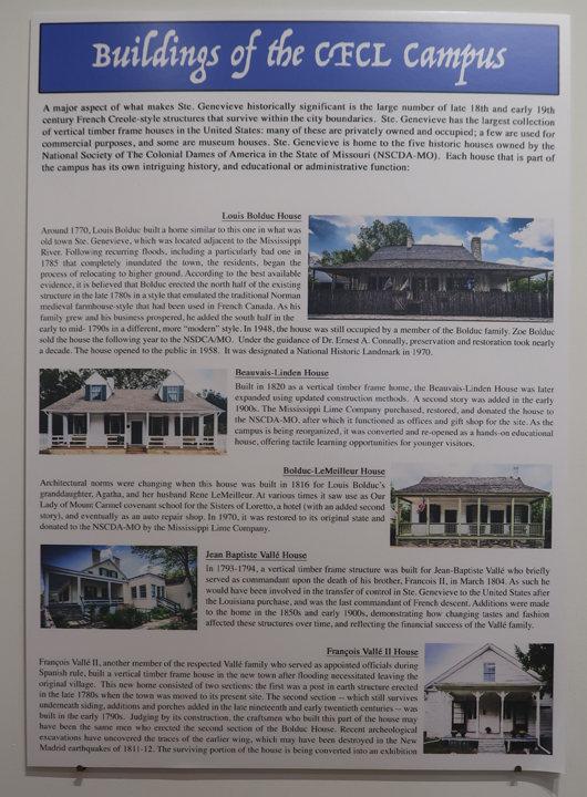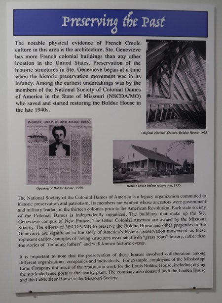 The Bauvais-Amoureux House (Missouri State historic Site) is now the NP Visitor Center. The location can be seen near the bottom of the Welcome map (#3). It was constructed in 1792.