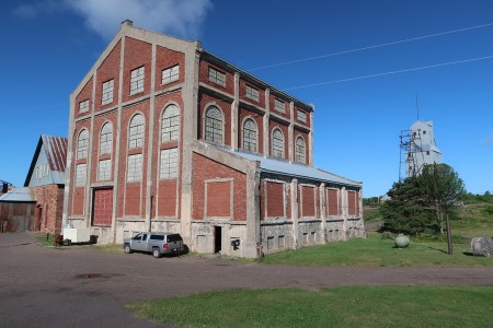 The Old No. 2 Hoist House that operated between 1894 and 1920 is on the left and the Old No. 2 Hoist House (Nordberg) that operated from 1920 to 1931 is on the right