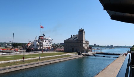 I have always been interested in canals and locks that provide connections between bodies of water. In that vein, I have wanted to see the Soo Locks that are on the U.S.-Canadian border and that allow ship traffic between Lake Superior and Lake Huron and onward to the Atlantic Ocean. I had been in St Ignace twice but did not do the 45min drive to the end of Interstate 75 and the Canadian border. Well, this time I did.