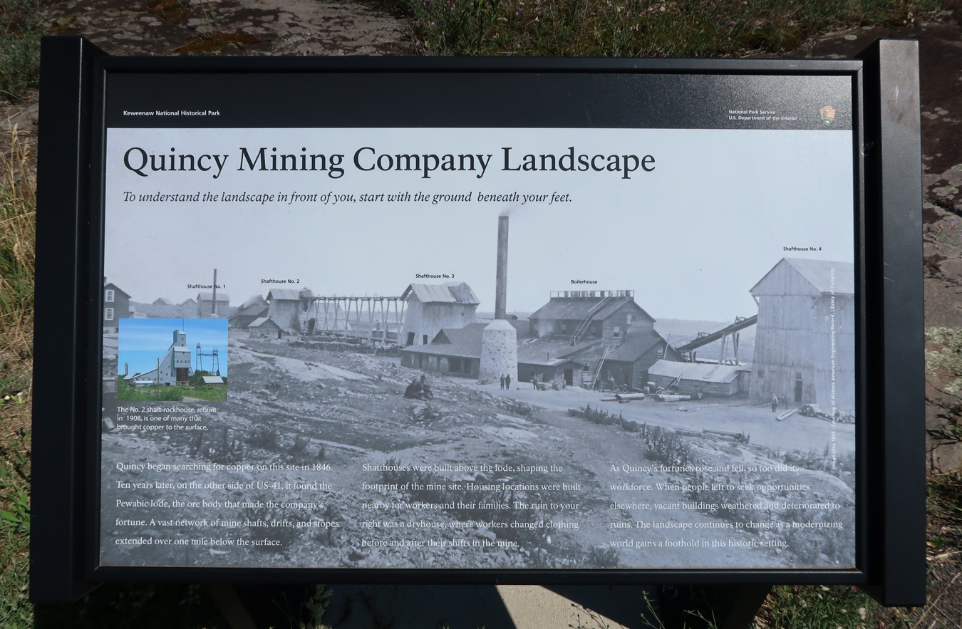 7/27 Sat – 8am breakfast and then 0.75hr to Keweenaw National Historical Park, Quincy Unit. From 7,000 years ago to the 1900s people mined Keweenaw copper. Native peoples made copper into tools and trade items. Investors and immigrants arrived in the 1800s in a great mineral rush, developing thriving industries and cosmopolitan communities. Though the mines have since closed, their mark is still visible on the land and people.