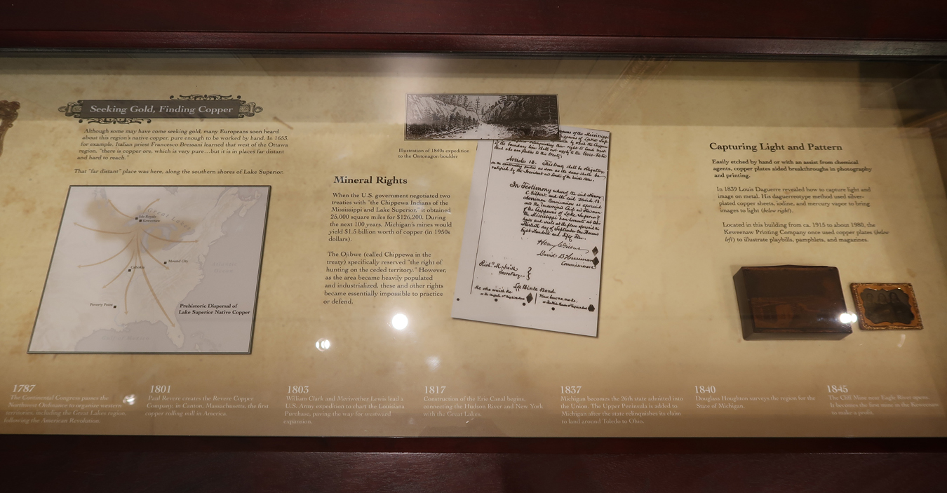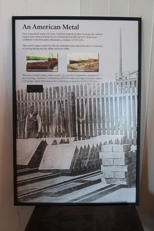 Copper Timeline (see the bottom of the photos) up to 1917; copper production on the peninsula ceased in 1968 with the closing of the Calumet & Hecla Mining Company