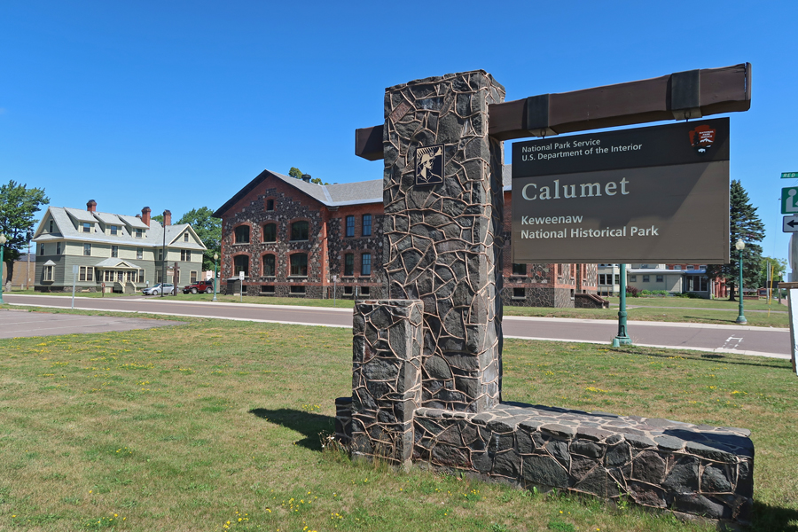 From the mine, I drove 15min NE to Calumet MI, this is the entrance to downtown off Rt41. The Park Headquarters is across the street.