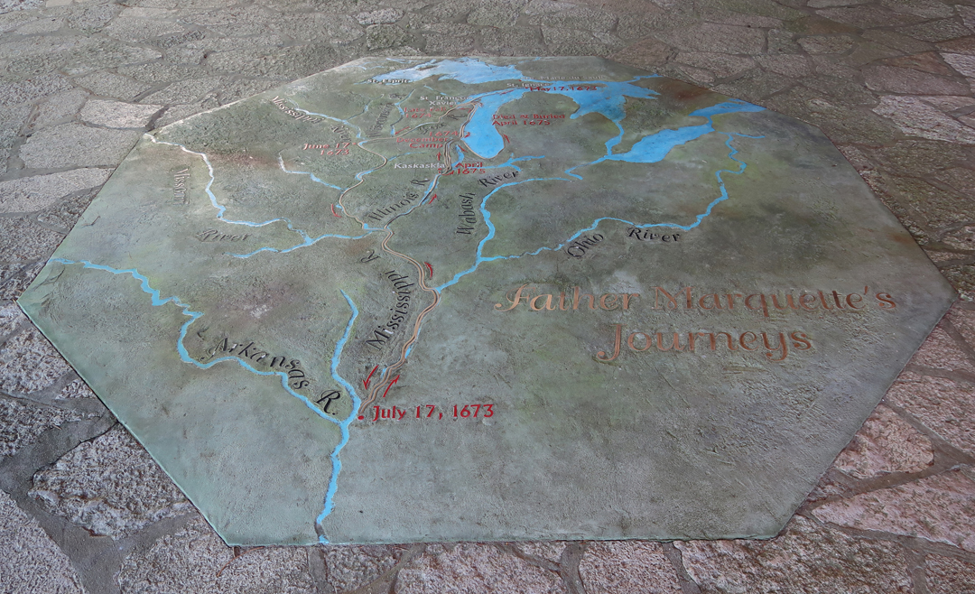 Lots of information here, on the wall, and in the floor! The travels of Father Marquette and Louis Jolliet