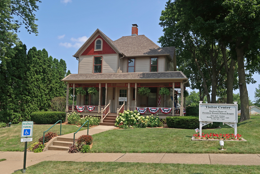 This modest 1891 Queen Anne style house was rented by the Reagan family from 1920 to 1923 (when Reagan was roughly 9 to 12 years old). Though the family moved from the house they remained in Dixon throughout the former president’s formative years; Visitor Center on left.