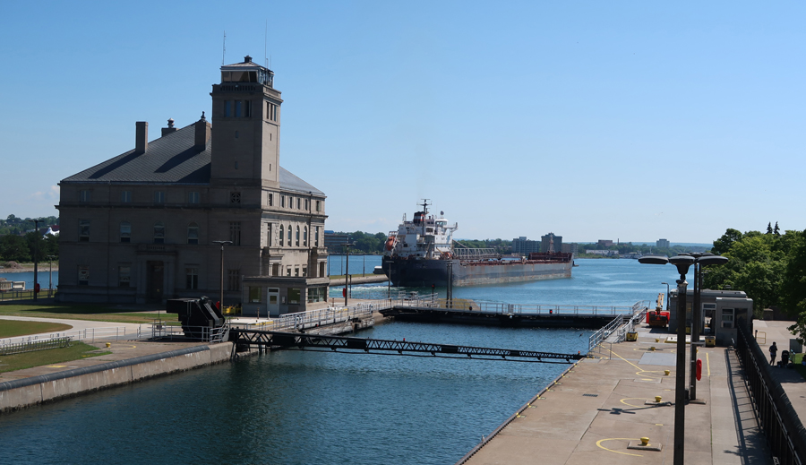 I have always been interested in canals and locks that provide connections between bodies of water. In that vein, I have wanted to see the Soo Locks that are on the U.S.-Canadian border and that allow ship traffic between Lake Superior and Lake Huron and onward to the Atlantic Ocean. I had been in St Ignace twice but did not do the 45min drive to the end of Interstate 75 and the Canadian border. Well, this time I did.