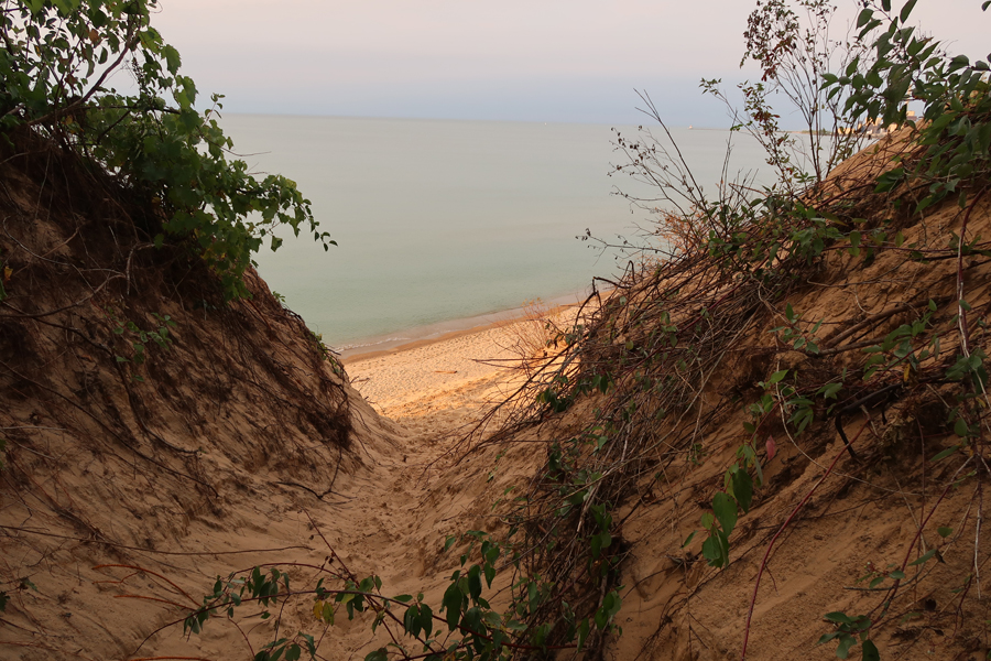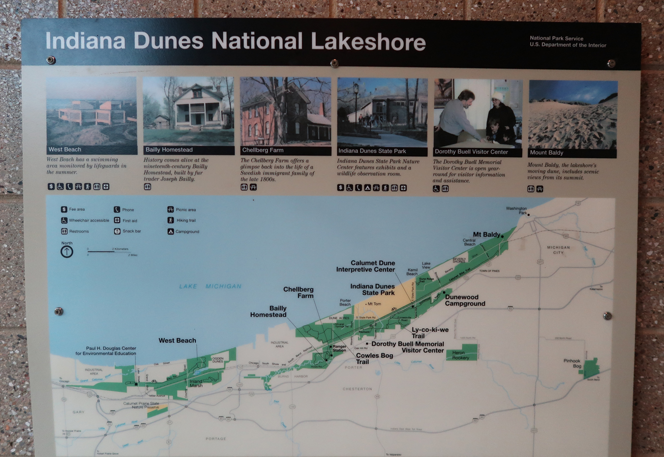 9/9/2019 – Left Springfield at 2pm EST, arrived at the Visitor Center at 5:30 CST. Unfortunately, they were now on winter hours and closed at 5pm. The Indiana Dunes National Lakeshore was elevated to National Park status in 2019. The Dorothy Buell Memorial Visitor Center now serves as the NP Visitor Center. The NP runs for about 15miles on the south shore of Lake Michigan.
