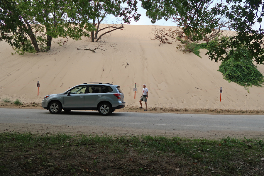 Tom climbing Mt Tom (192ft) in Indiana Dunes State Park