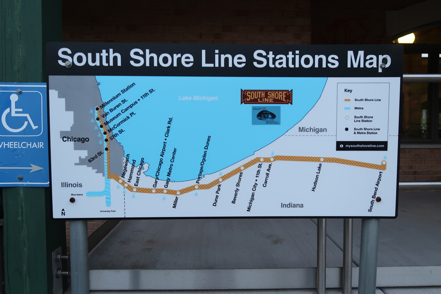 South Shore Line RR Station, you can take the commuter train from Chicago to the Dunes!