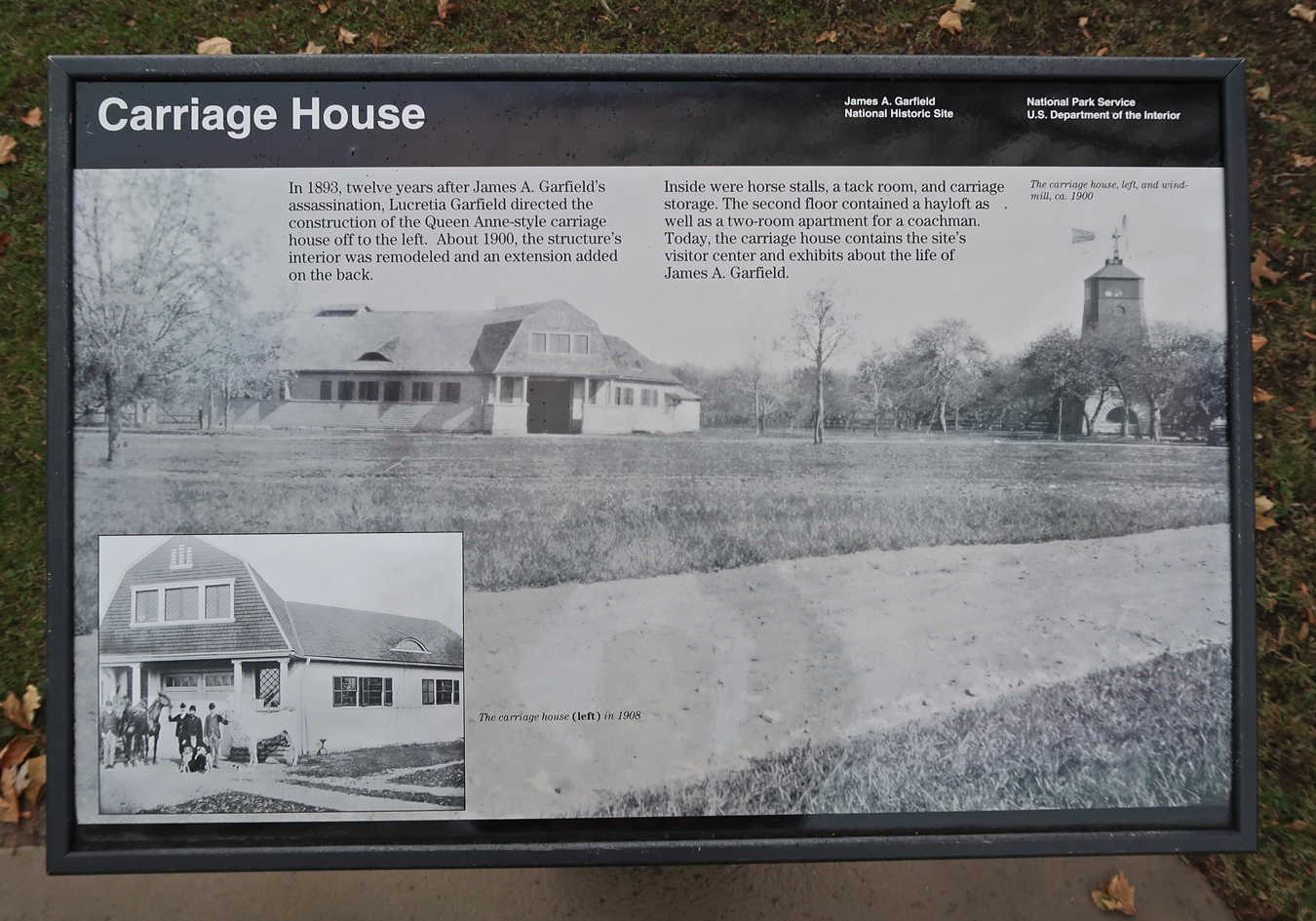 12/10/2019 – James A. Garfield National Historic Site, Mentor OH; our 20th President served only 6.5 months in office. He was shot at a DC railroad station by a disgruntled office seeker on July 2, 1881. He died at age 49 on September 19th from infections caused by his doctors! Chester A. Arthur became our 21st President.