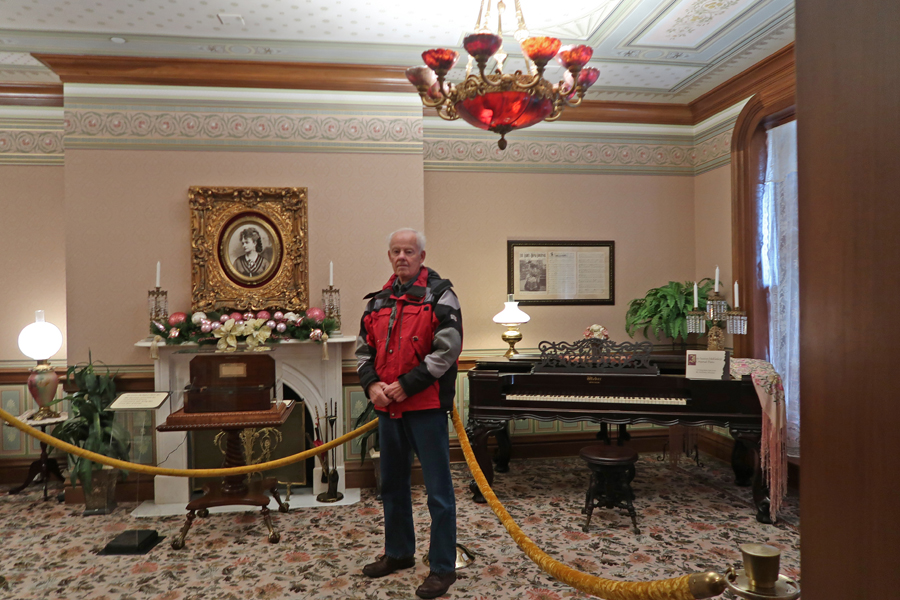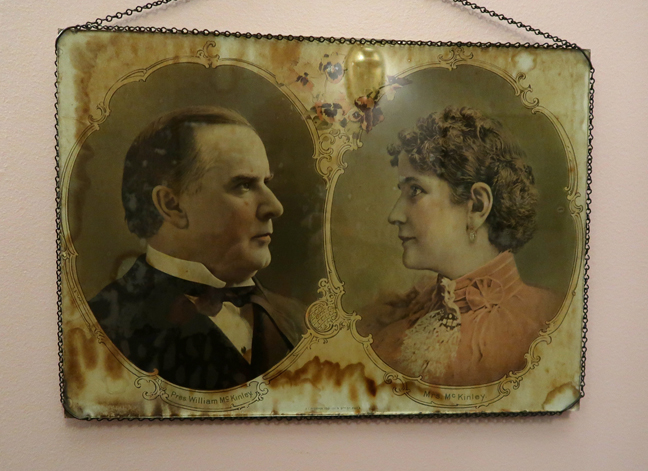 The focus of the tour was Ida McKinley, which is what you would expect for a “First Ladies NHS.” William and Ida had two daughters. Katherine was born on Christmas Day 1871. Ida was born in 1873 but died the same year. Katherine died in 1875 of typhoid fever, her portrait is above the fireplace.