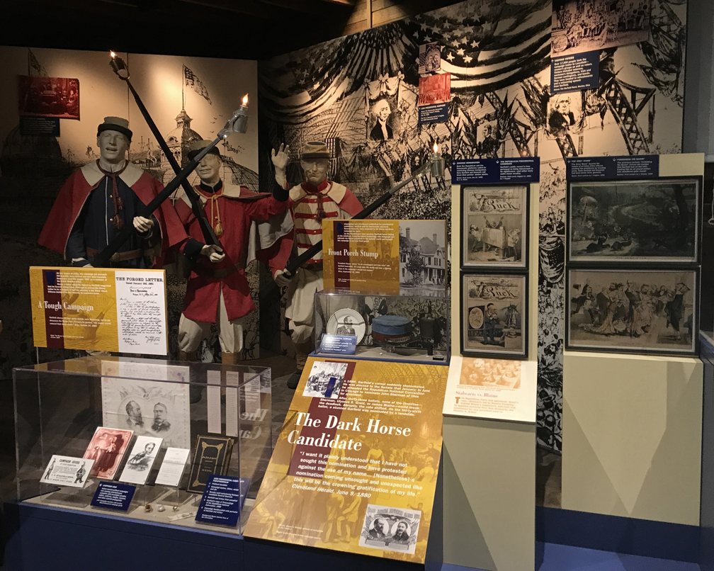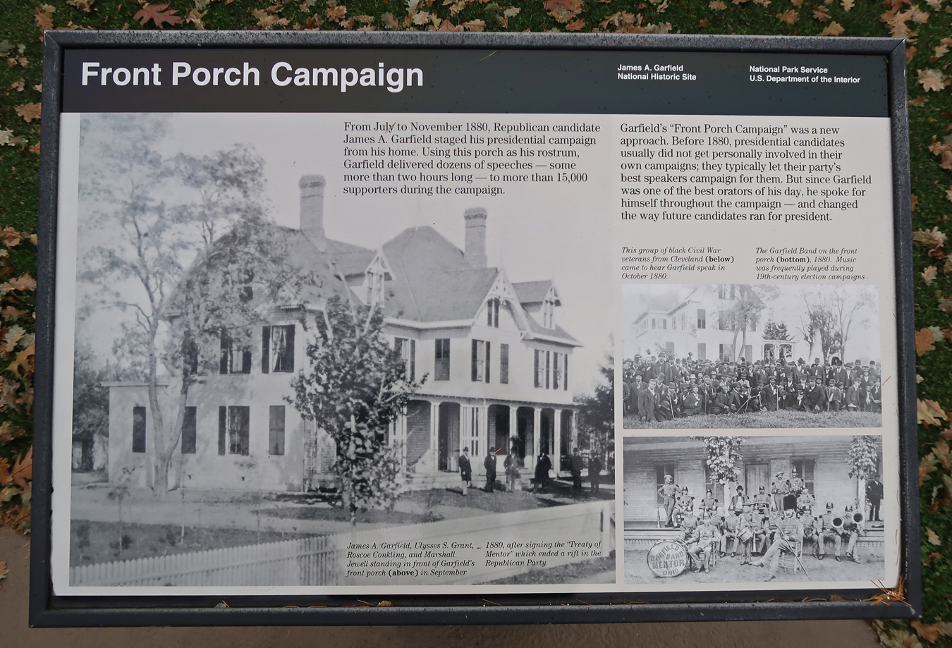 Garfield rose from poverty through hard work. He attended the Western Reserve Eclectic Institute, now Hiram College, where he met his future wife Lucretia. He was a teacher, minister, OH legislator, U.S. congressman, and President. He was the first presidential contender to “campaign” for office. He ran a “front porch” campaign where thousands came to his home, which the press called Lawnfield, to hear him speak.