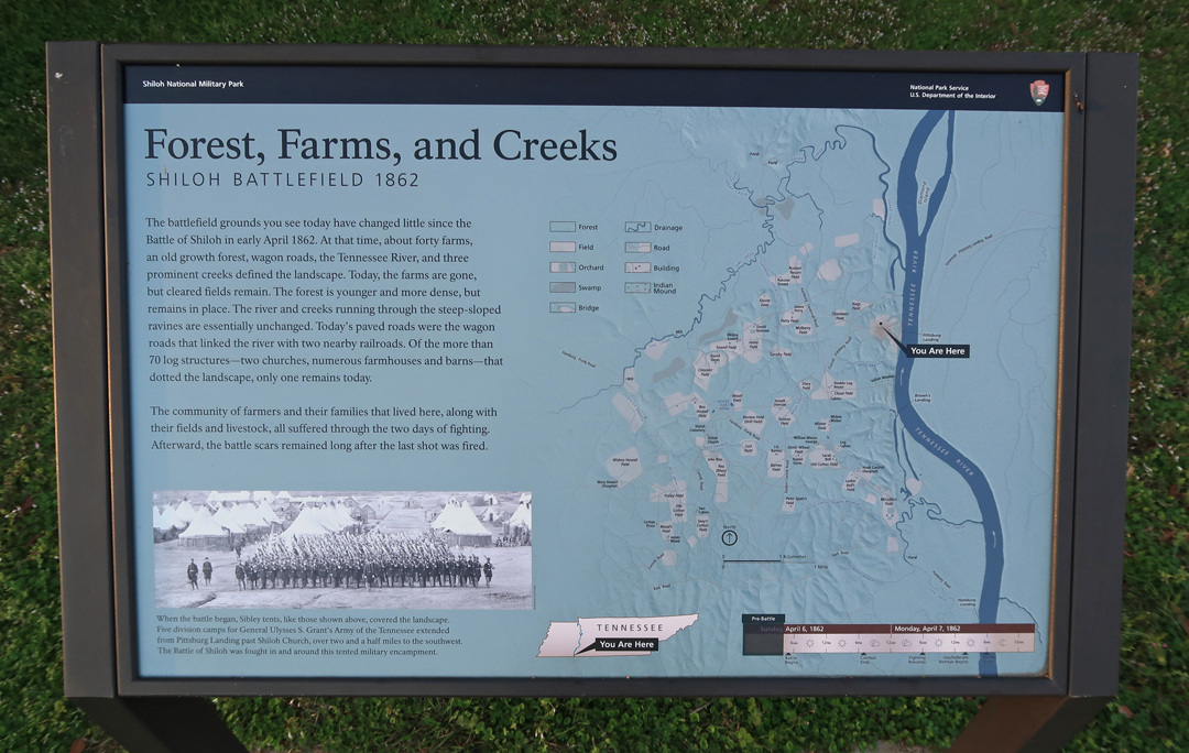 Shiloh NMP also contains the Shiloh Indian Mounds National Historic Landmark. Eight hundred years ago, a town occupied the high river bluff overlooking the Tennessee River.