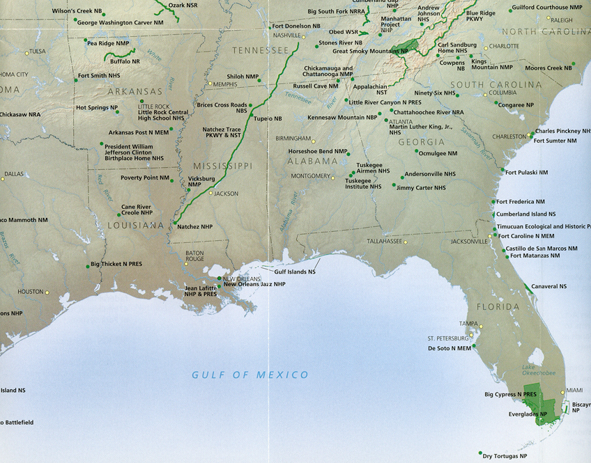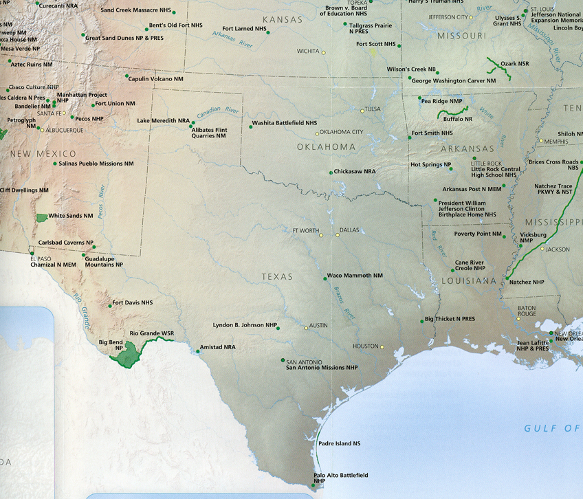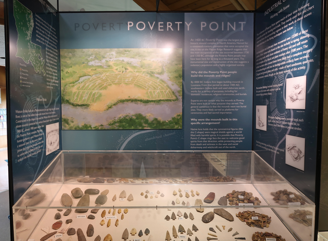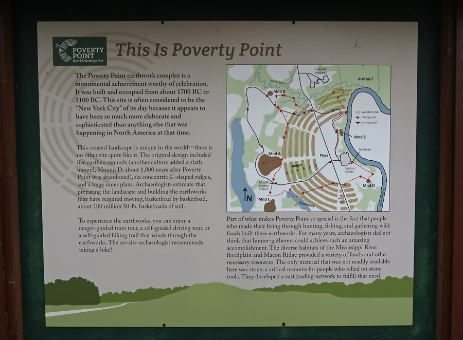 Poverty Point NM in LA. See Blog for May 2010. This is a UNESCO World Heritage Site. When Stonehenge was being built and Queen Nefertiti ruled Egypt, American Indians were building earthen monuments in north LA. This site is somewhat unique in the NP System in that it is run by the state of LA.