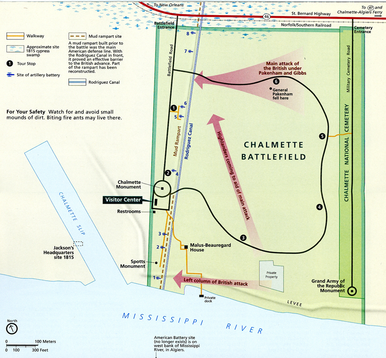 The second site is Chalmette Battlefield. It commemorates Andrew Jackson’s victory over the British in the Battle of New Orleans. This battle took place on January 8, 1815 AFTER the U.S. and Britain ended the war with the Treaty of Ghent. However, Congress did not ratify the treaty until February 1815, so fighting continued – seems senseless! At the same time, it has to be recognized that there were lengthy delays in communication in 1815.