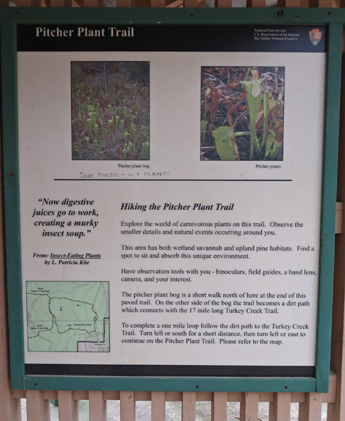 The second trail was another one-mile loop – the Pitcher Plant (insect eating) Trail