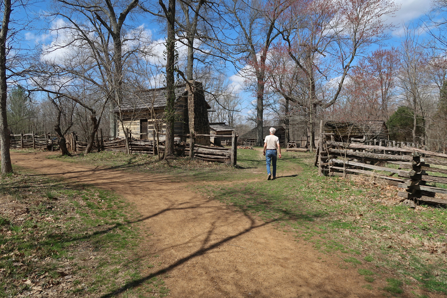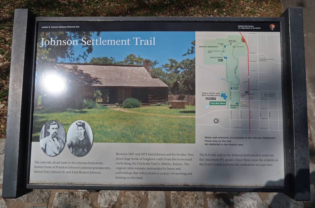 The Johnson Settlement Trail (~1 mile) takes you through the Historical Park. The first stop is Sam Ealy Johnson Sr.’s Cabin