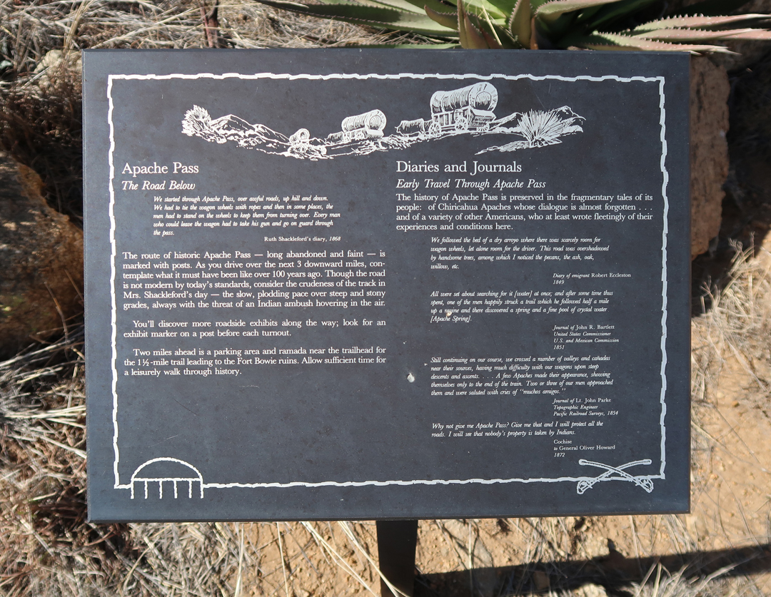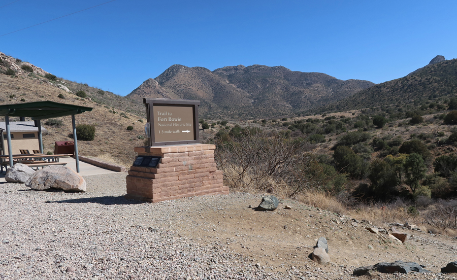 It was 3.5hrs to Bowie AZ; then twenty minutes on the unpaved Apache Pass Road to the Fort Bowie NHS trailhead
