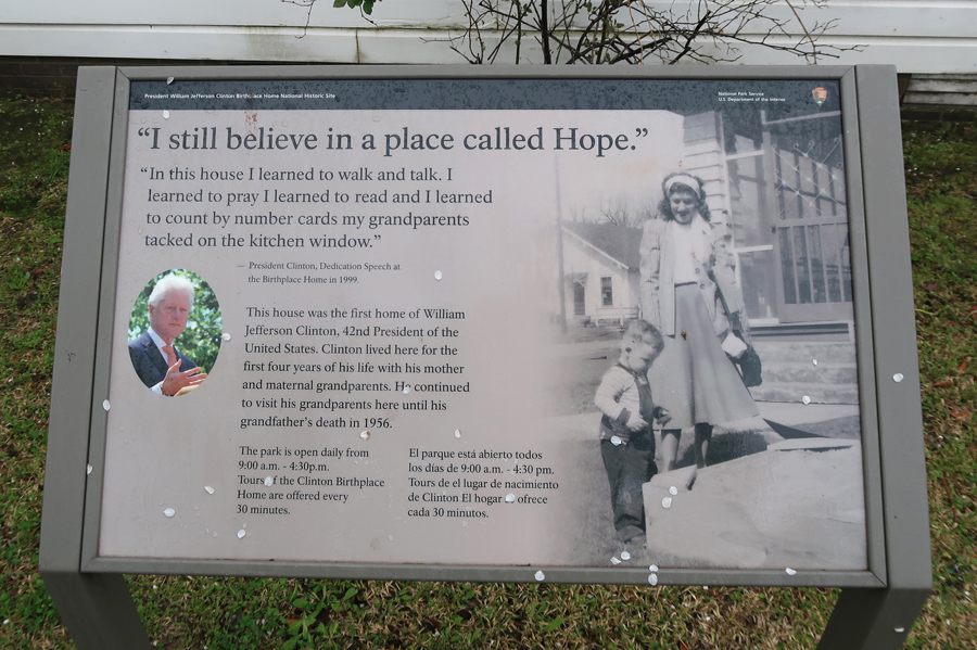 3/25 Th – President William Jefferson Clinton Birthplace Home NHS in Hope AR. See Blog for May 2014. Clinton lived here for seven years. He was born in 1946 and his family moved to Hot Springs AR in 1953.
