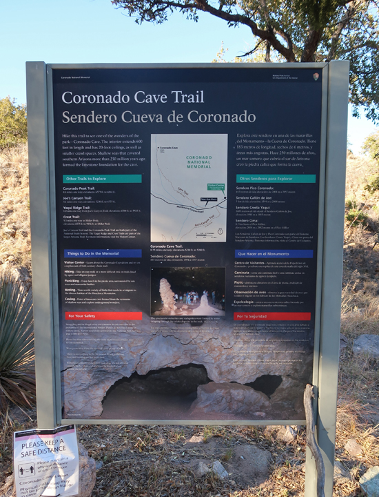 My objective on this trip was to hike to and into Coronado Cave, about a mile roundtrip. My first stop was the Visitor Center (closed).