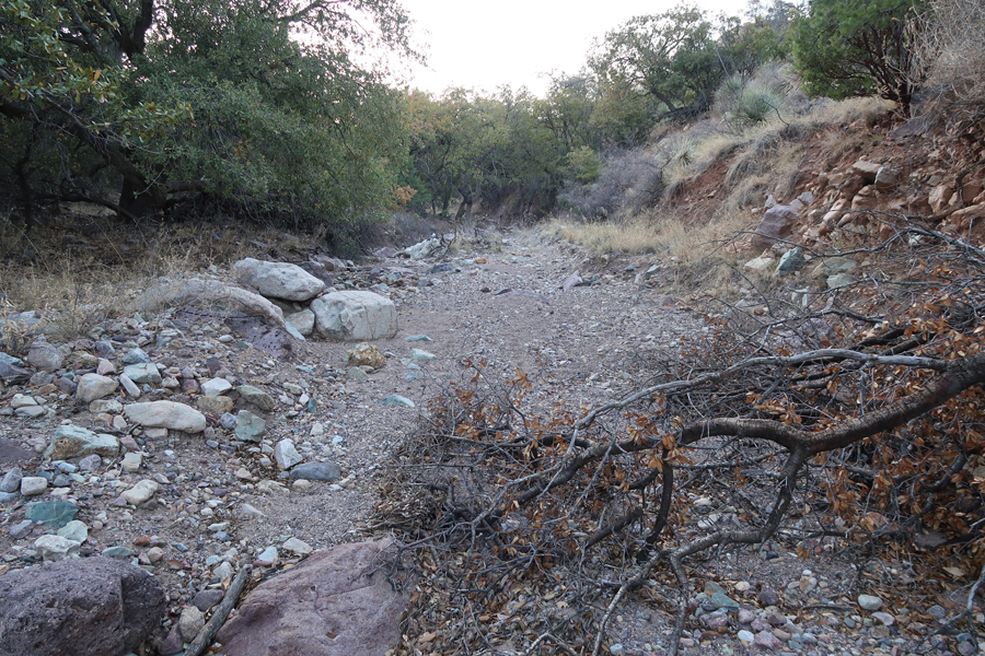 It was getting dark, so I rushed to the Cave Trail parking area and started hiking up a stream bed, which I thought was the trail. After about a mile I figured I must have missed the point where the trail left the stream bed. I retraced my route but by the time I found the trail it was too dark to proceed.