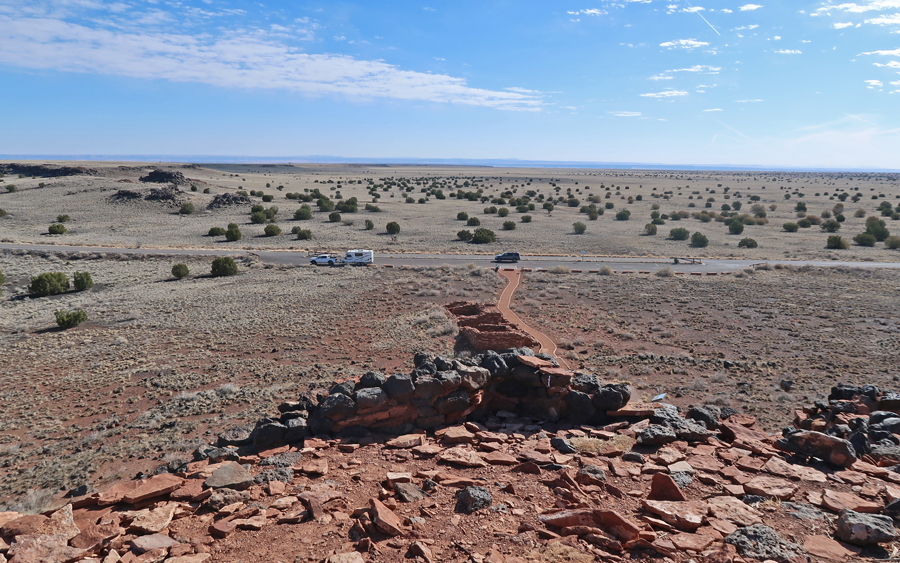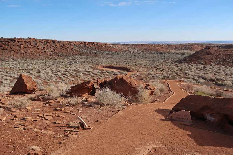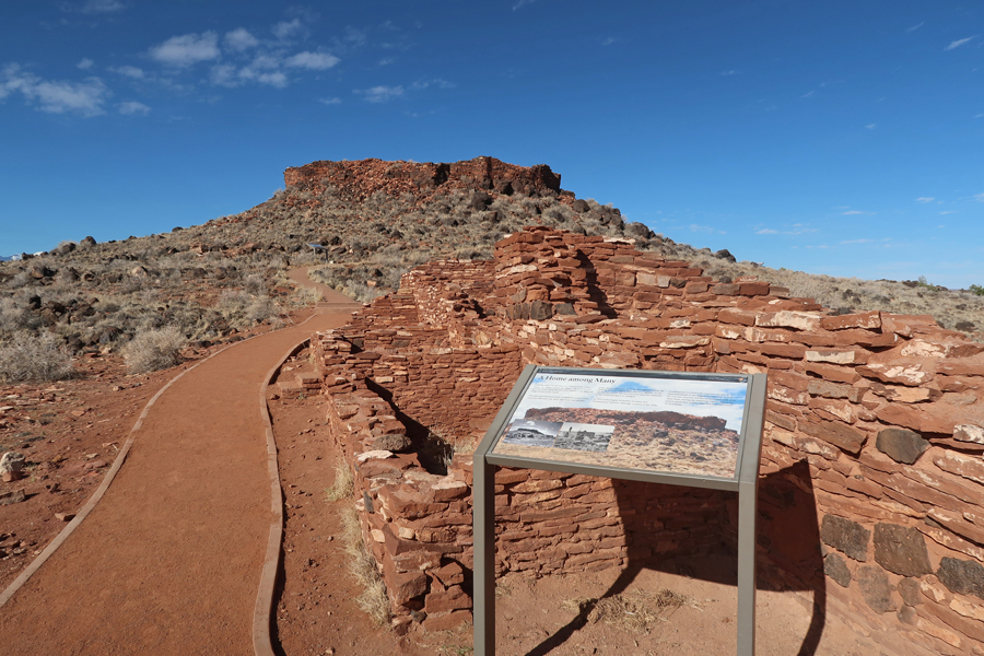 The Wupatki Pueblo 0.5mi Trail (0.5mi) starts at the Visitor Center. This 104-room pueblo was a regional trade center.