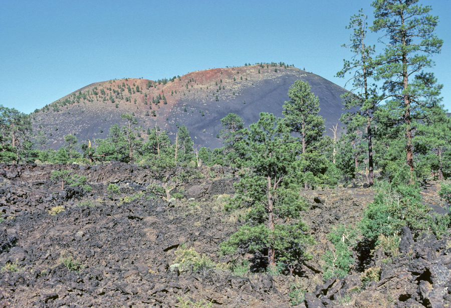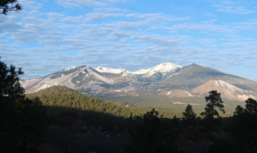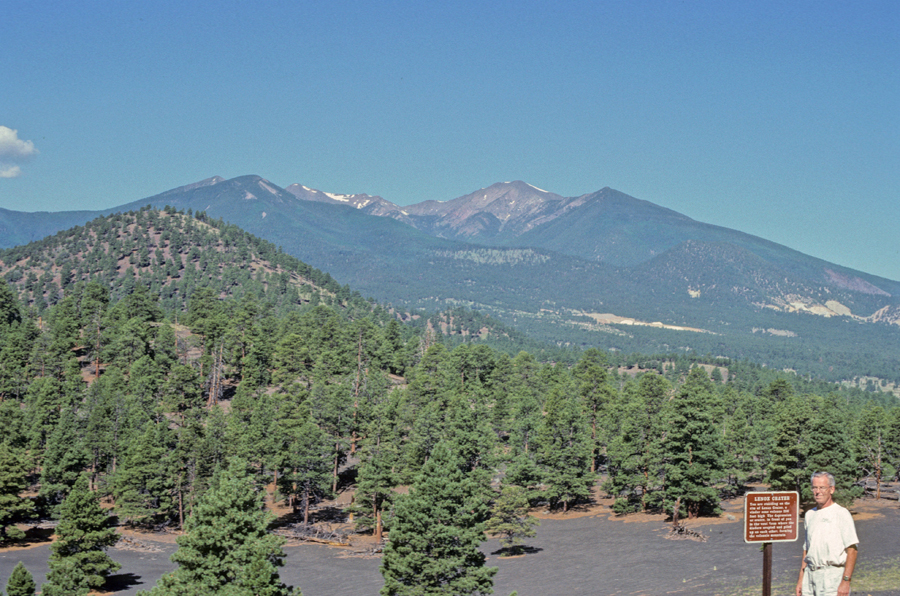 Looking back at Sunset Crater (left) and San Francisco Peaks